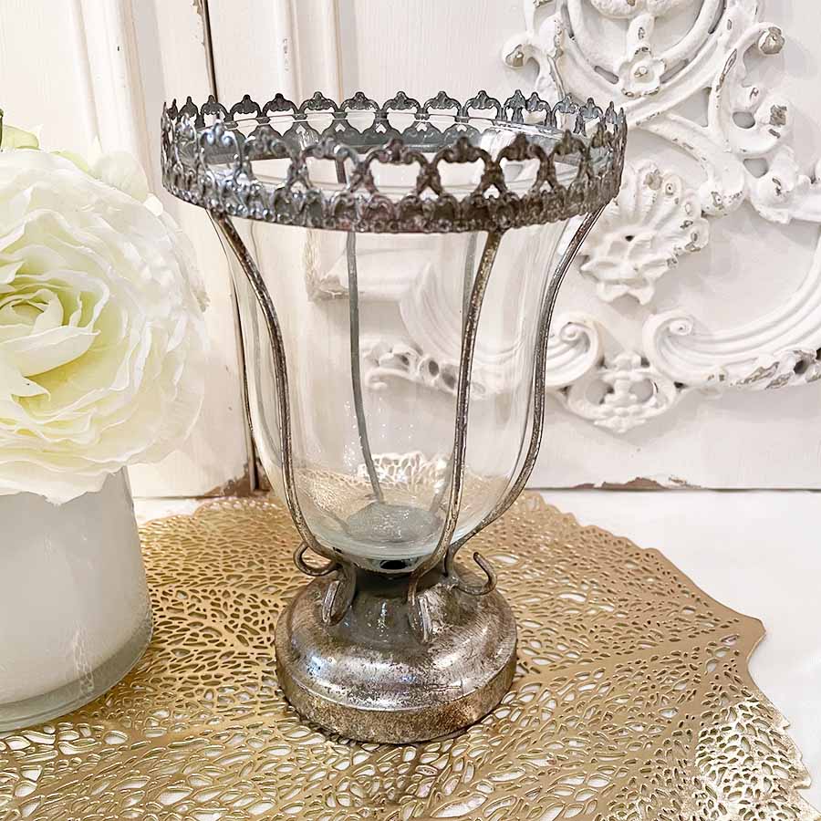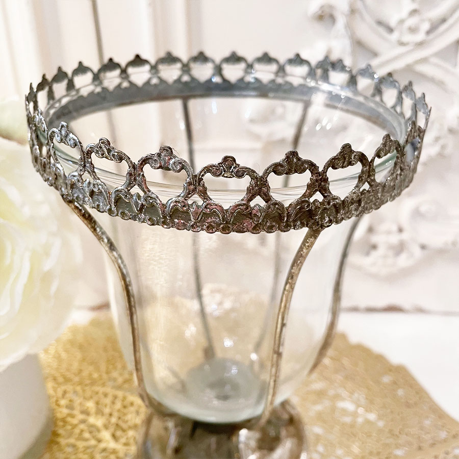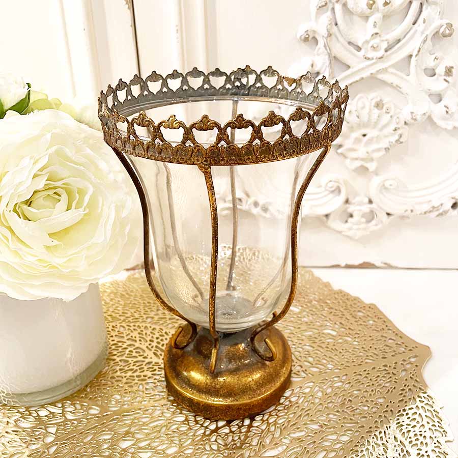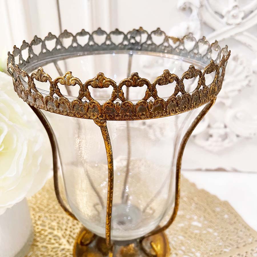 アンティークゴールドのアイアンとガラスを組み合わせたおしゃれで実用的な花器です。