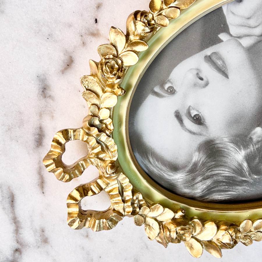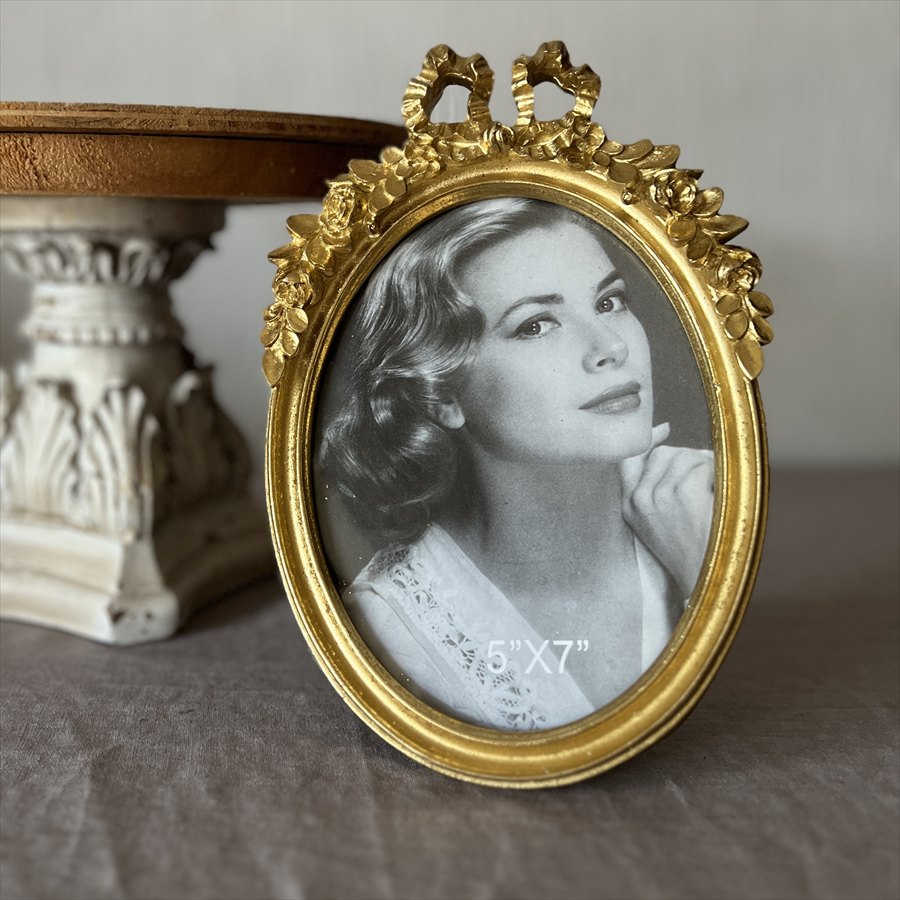 リボンとローズをフレームにあしらった美しいヴィクトリアンデザインのフォトフレームです。