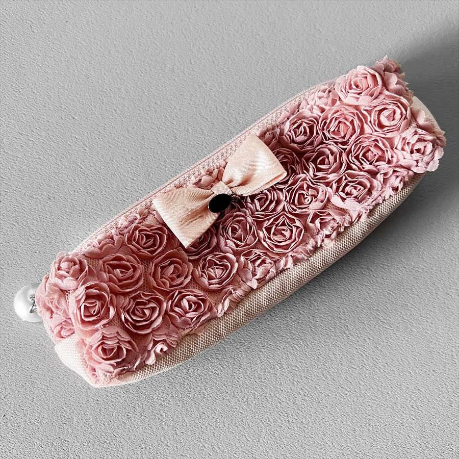 筆箱 眼鏡ケース ファスナーポーチ コスメポーチ 化粧ポーチ 小物入れ 薔薇 ローズ柄 携帯 レディース ギフト プレゼント