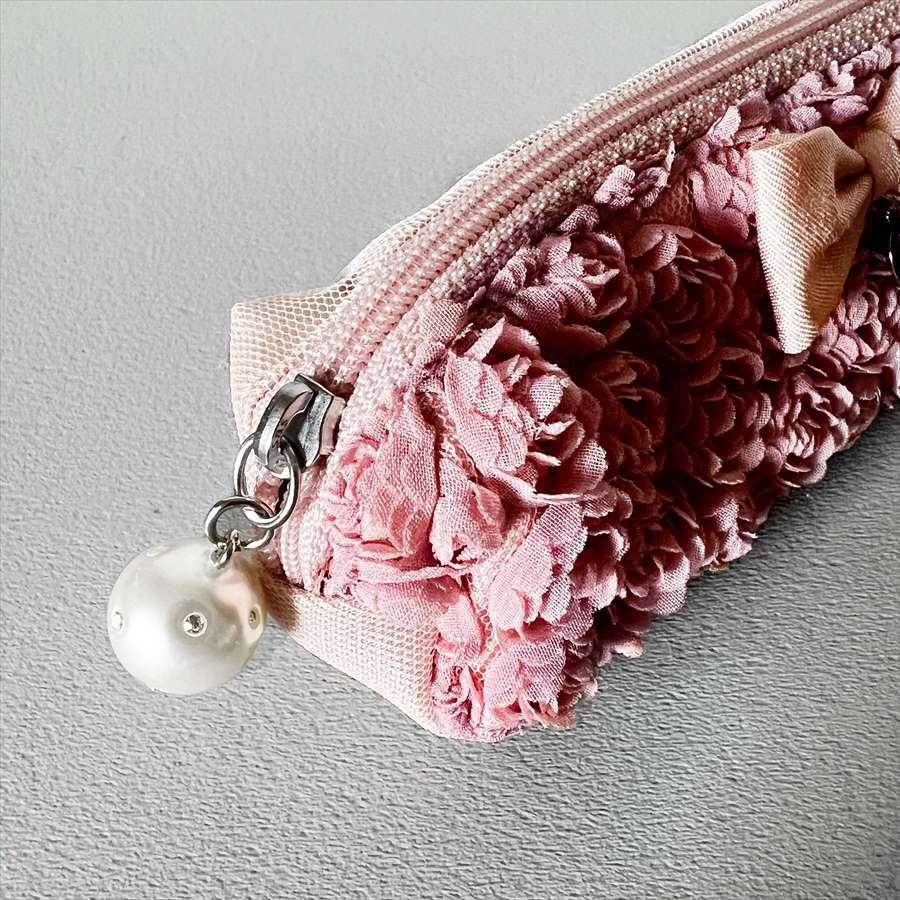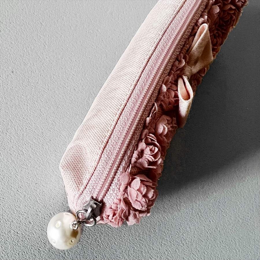 ファスナーには可愛いパールのチャーム付きです。