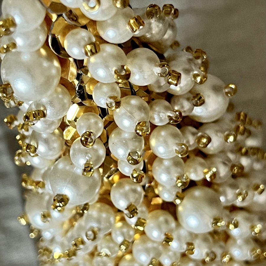 芯材にゴールドのスパンコールと光沢のあるホワイトパールが縫い付けられています。