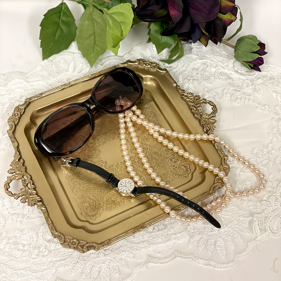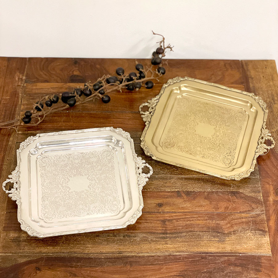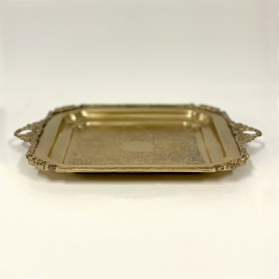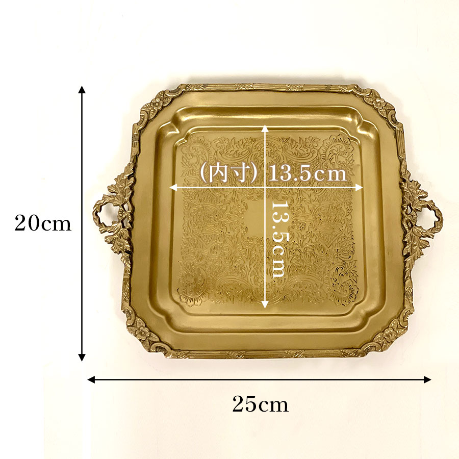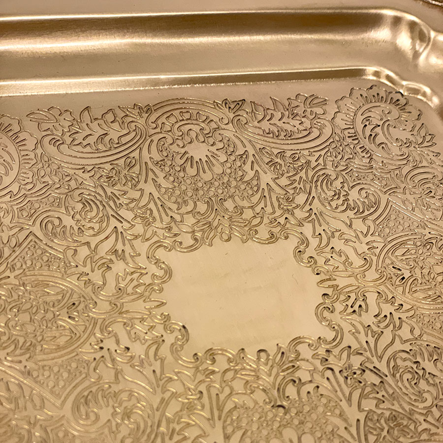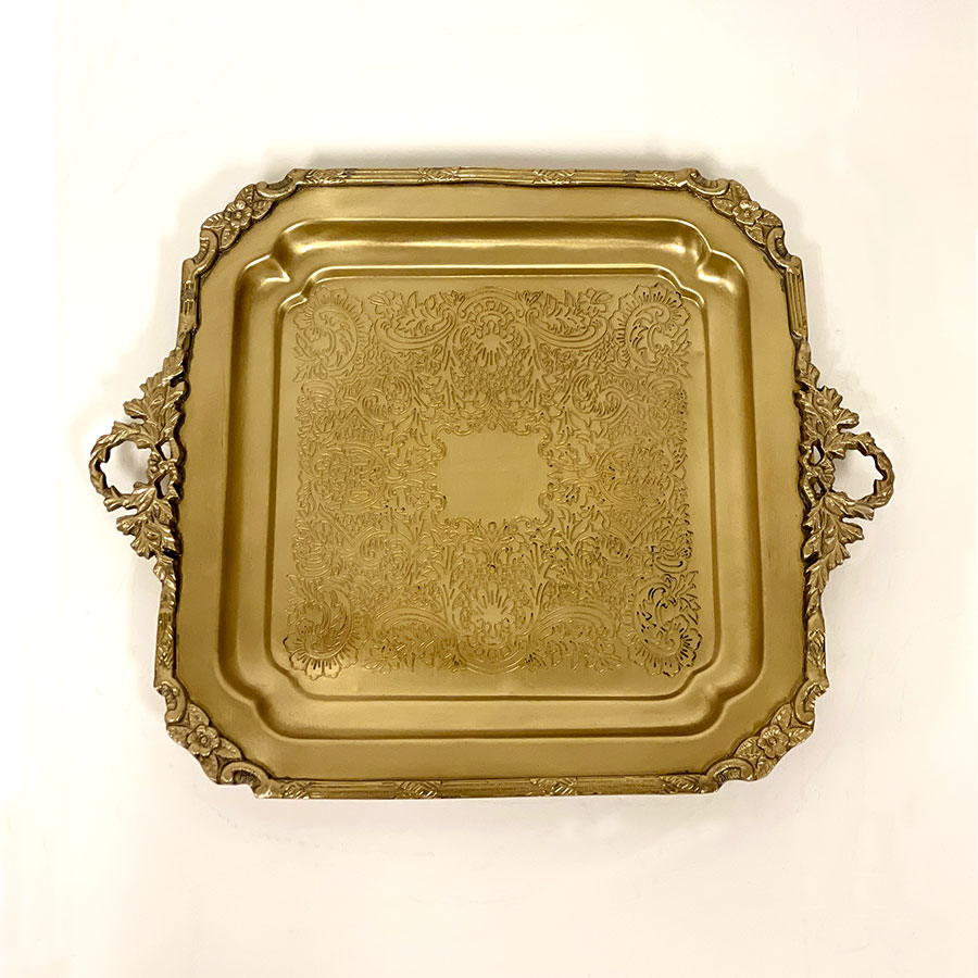 クラシカルな彫刻模様が美しい、真鍮製のスクエアトレー。