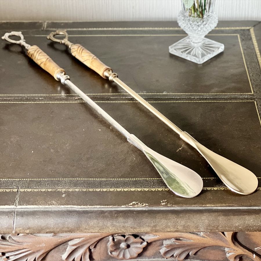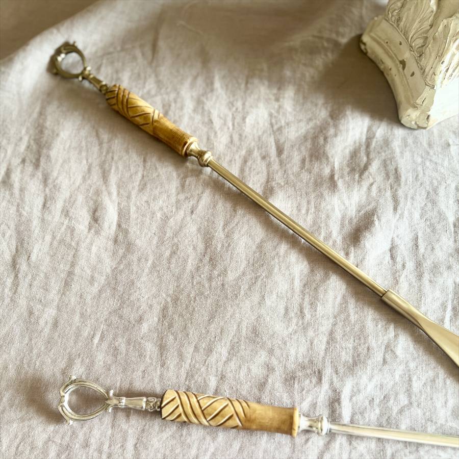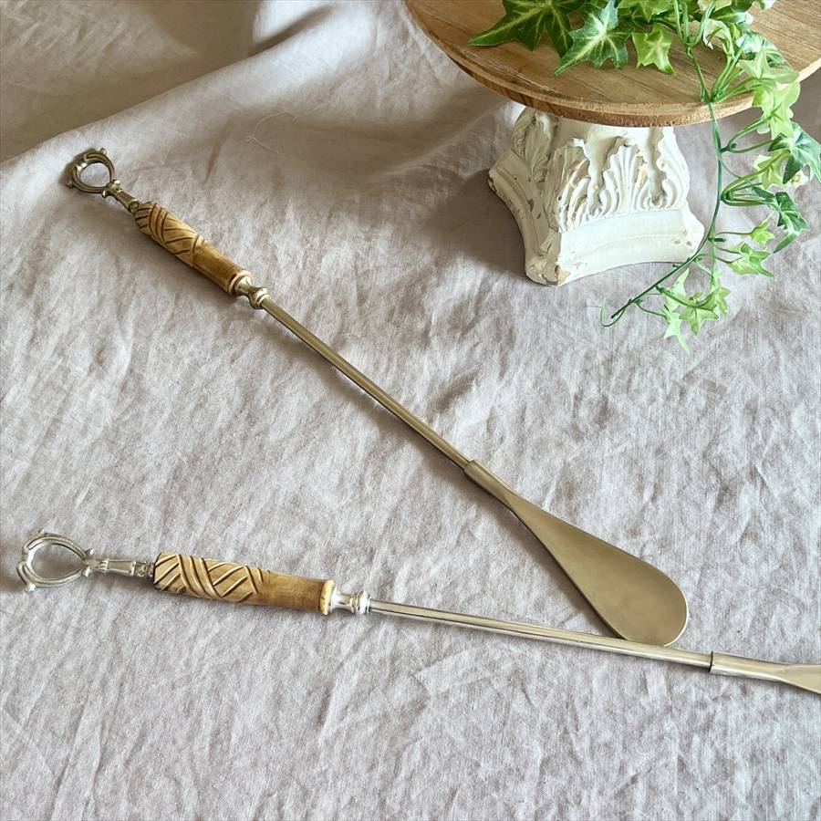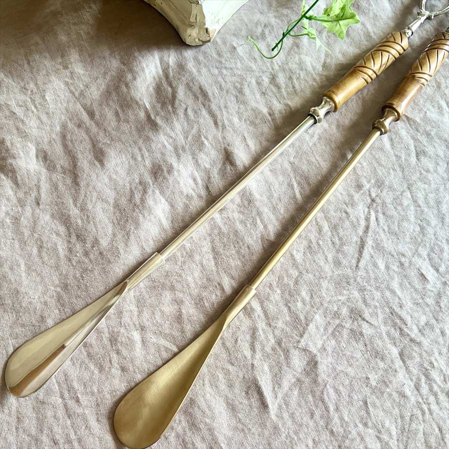 アンティーク調 ロング靴べら(真鍮×木製ハンドル)2色展開・靴ベラ