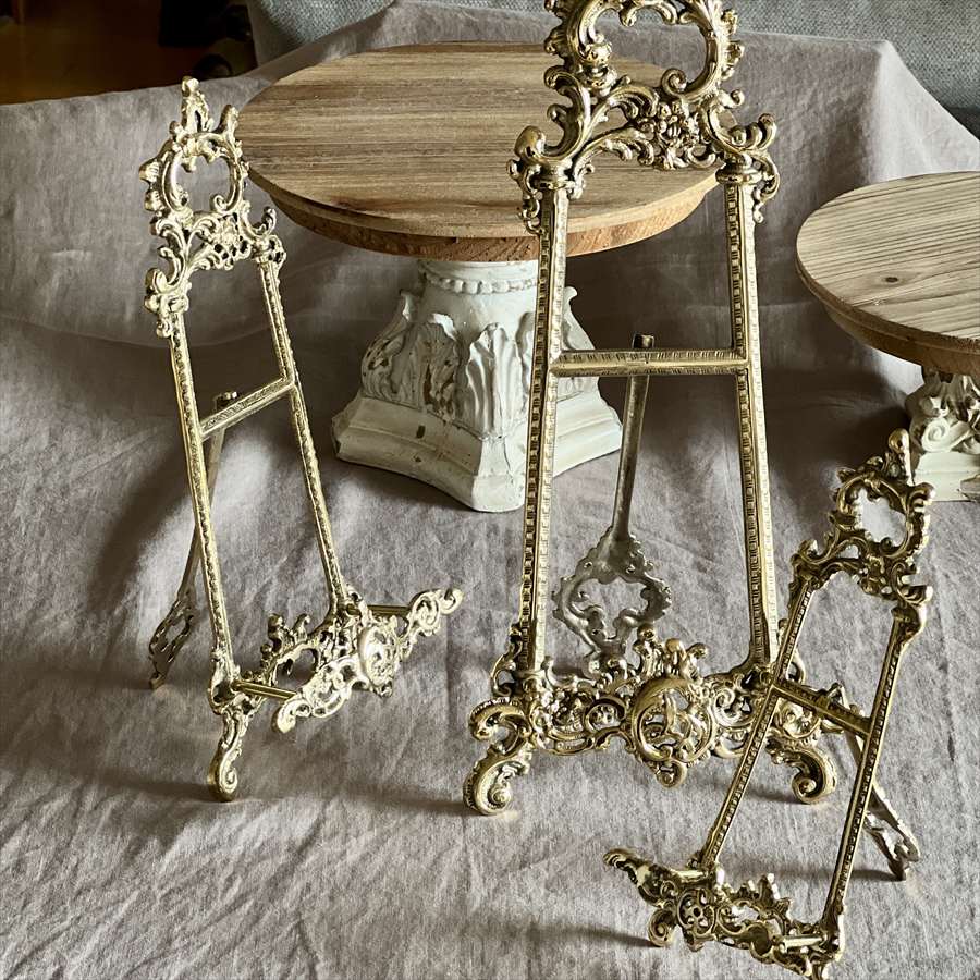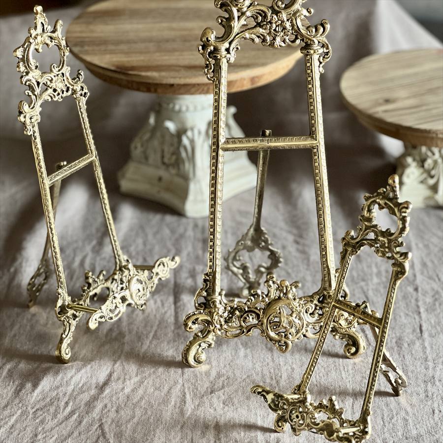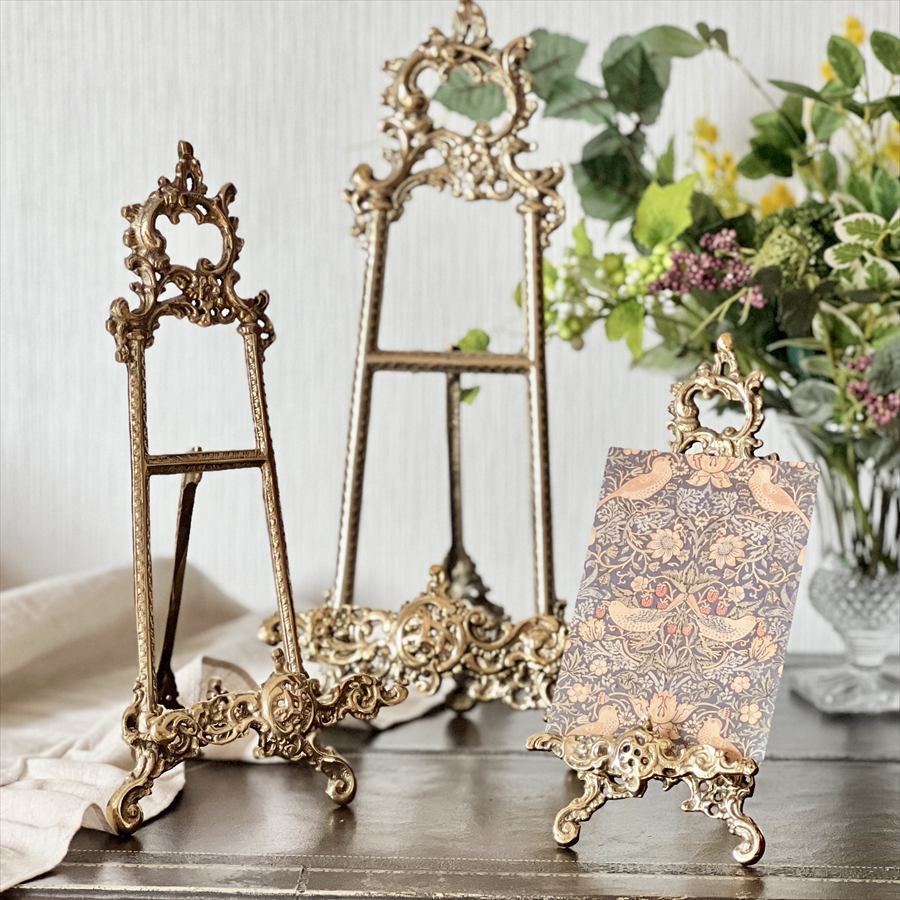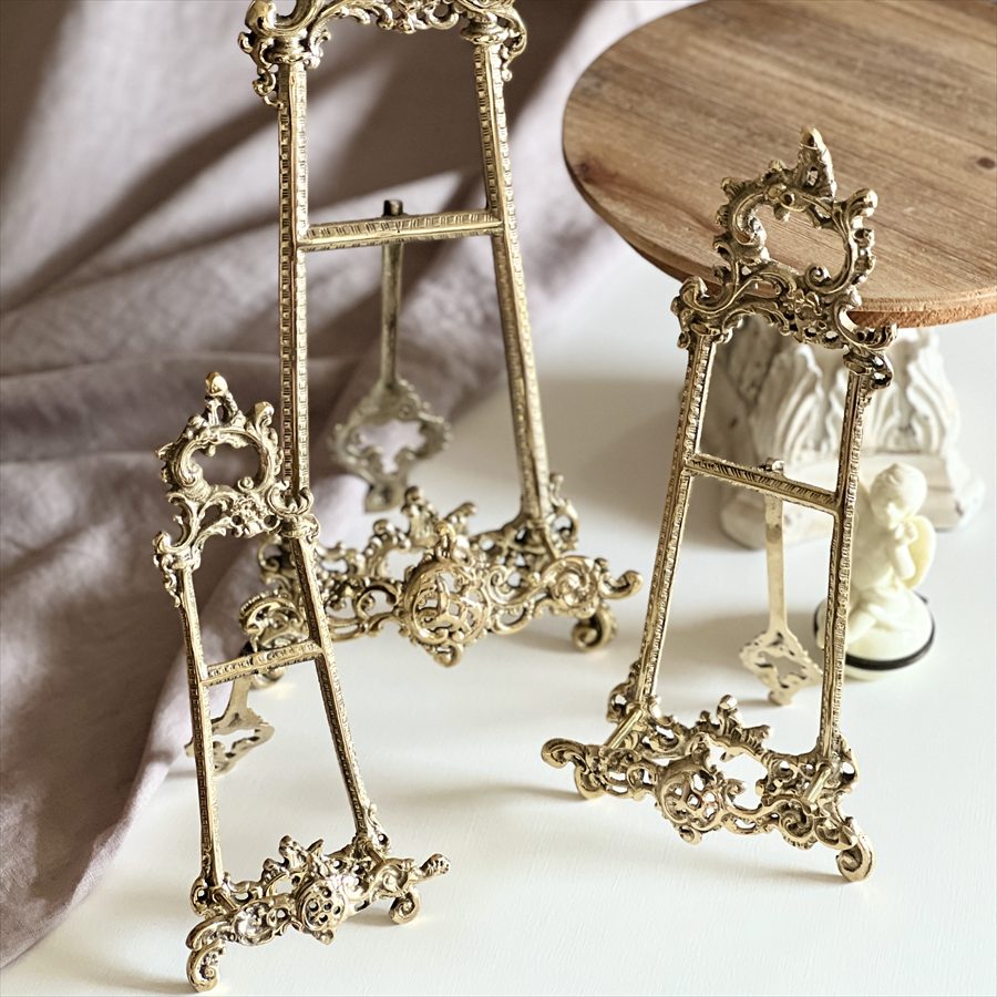繊細な装飾が魅力の、クラシックな雰囲気ただよう真鍮製イーゼルスタンド。
