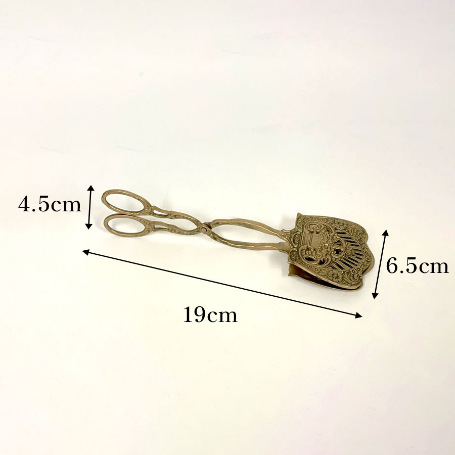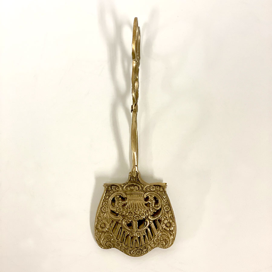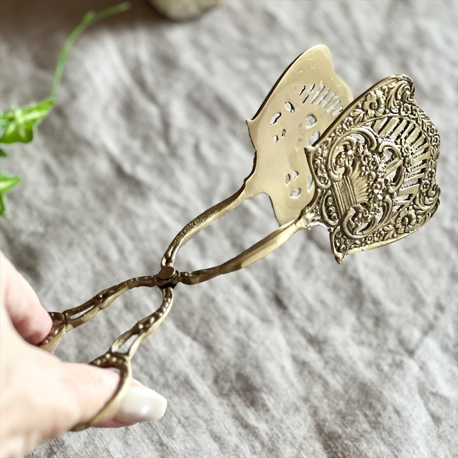 繊細な彫刻と優雅なフォルムが目を惹く、真鍮製のサービングトング。