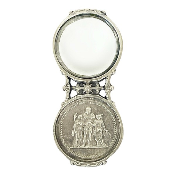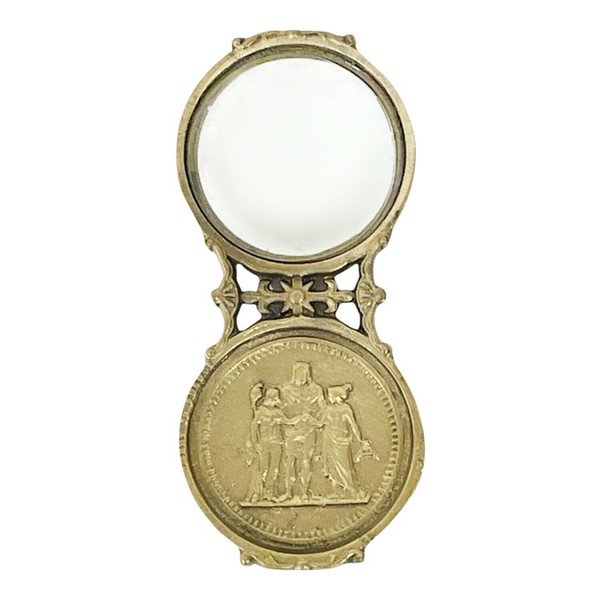 クラシカルなデザインが魅力の、真鍮フレームとガラスで作られたアンティーク調ルーペ。