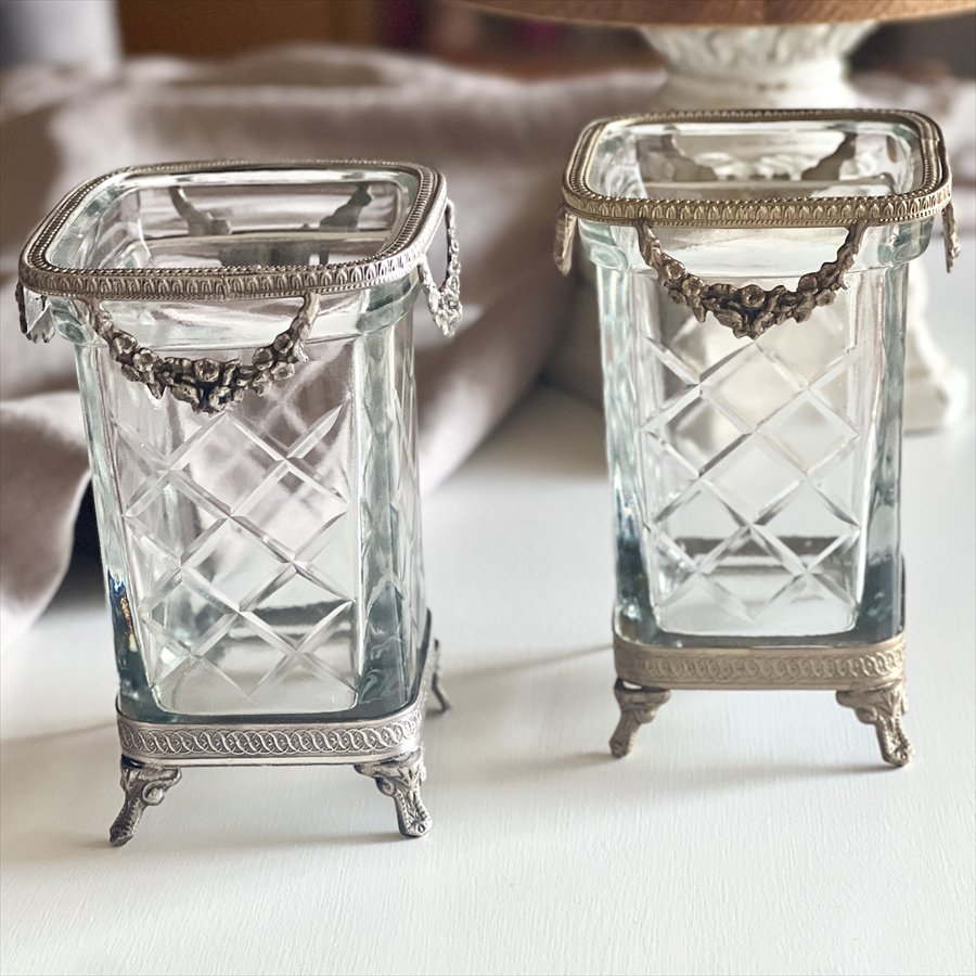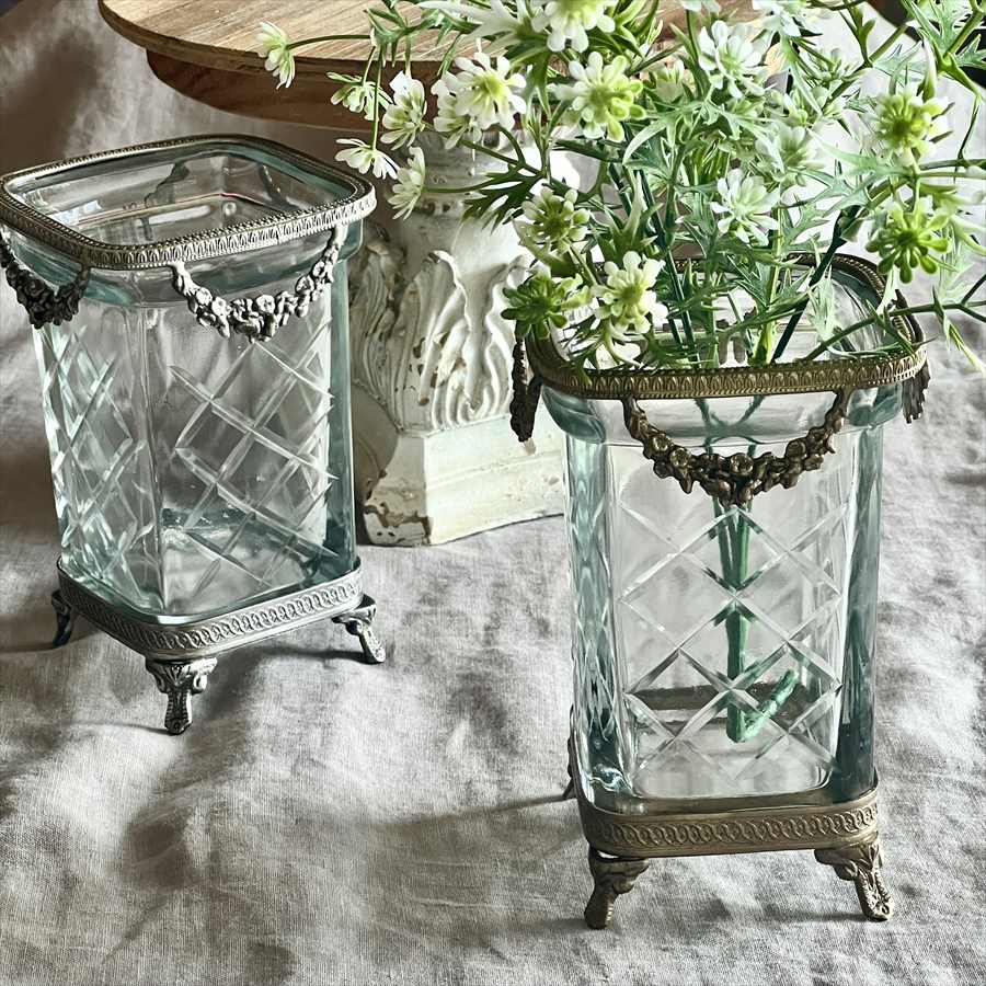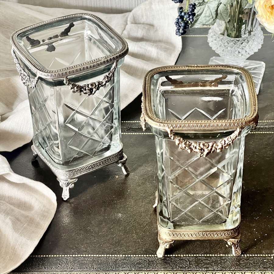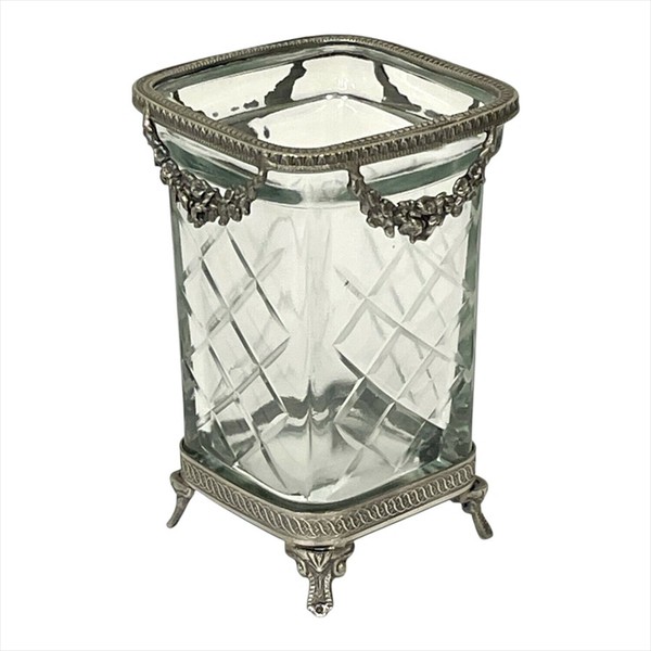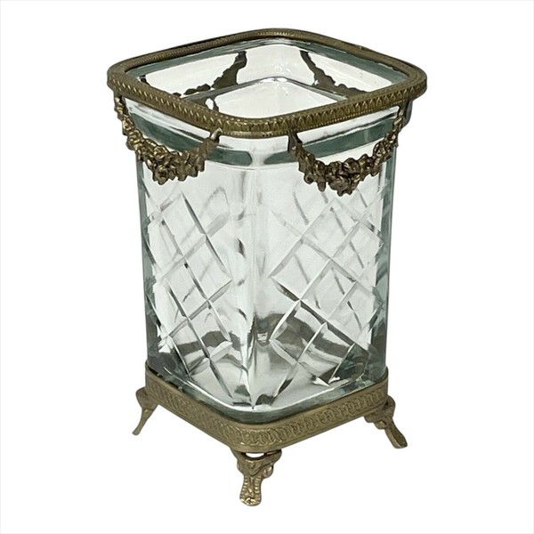 重厚感のある真鍮フレームと、カットガラスが美しく調和したスクエア型コンテナ。