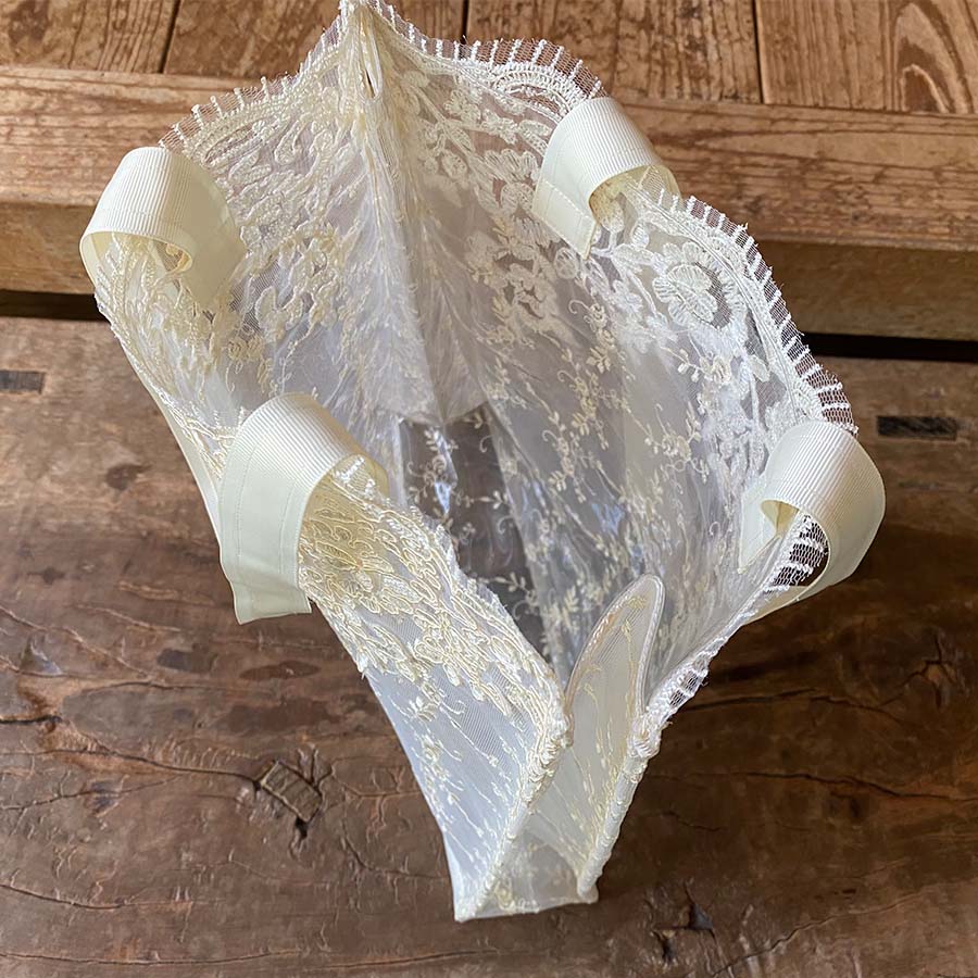 | 素材 | チュールレース・ポリエステル100% 刺?糸・ポリエステル100% 裏地・ビニール |