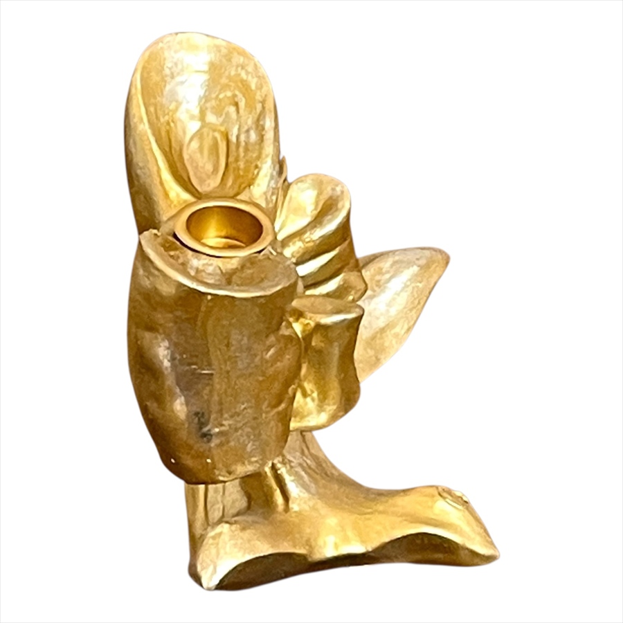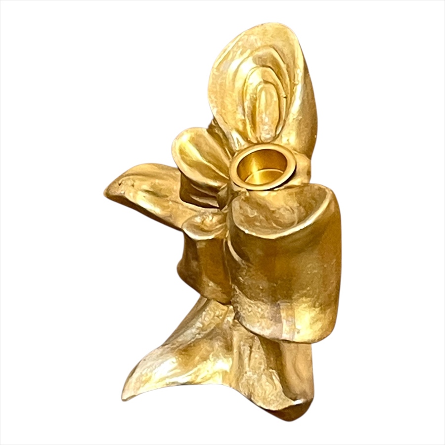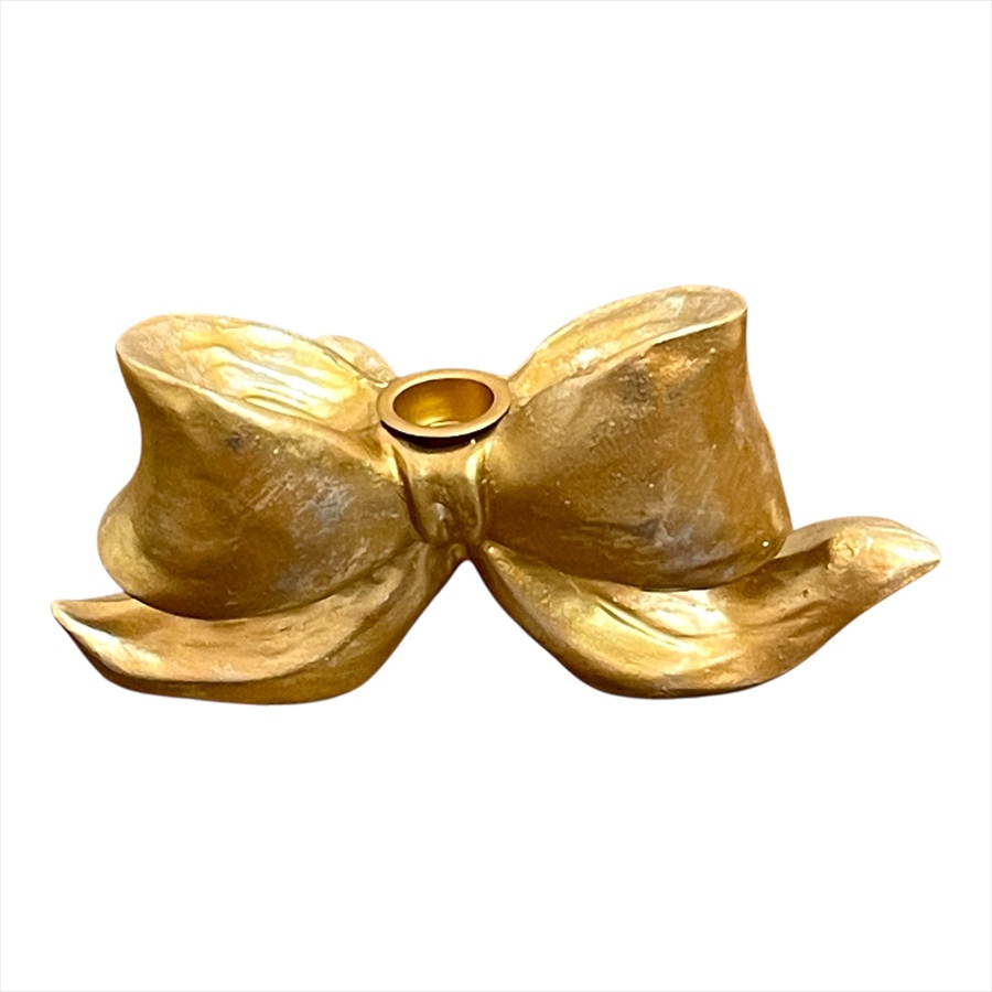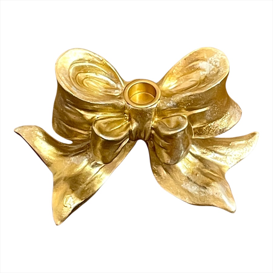 優美なリボンモチーフが印象的なキャンドルホルダー。ゴールドカラーの輝きが空間を華やかに彩ります。