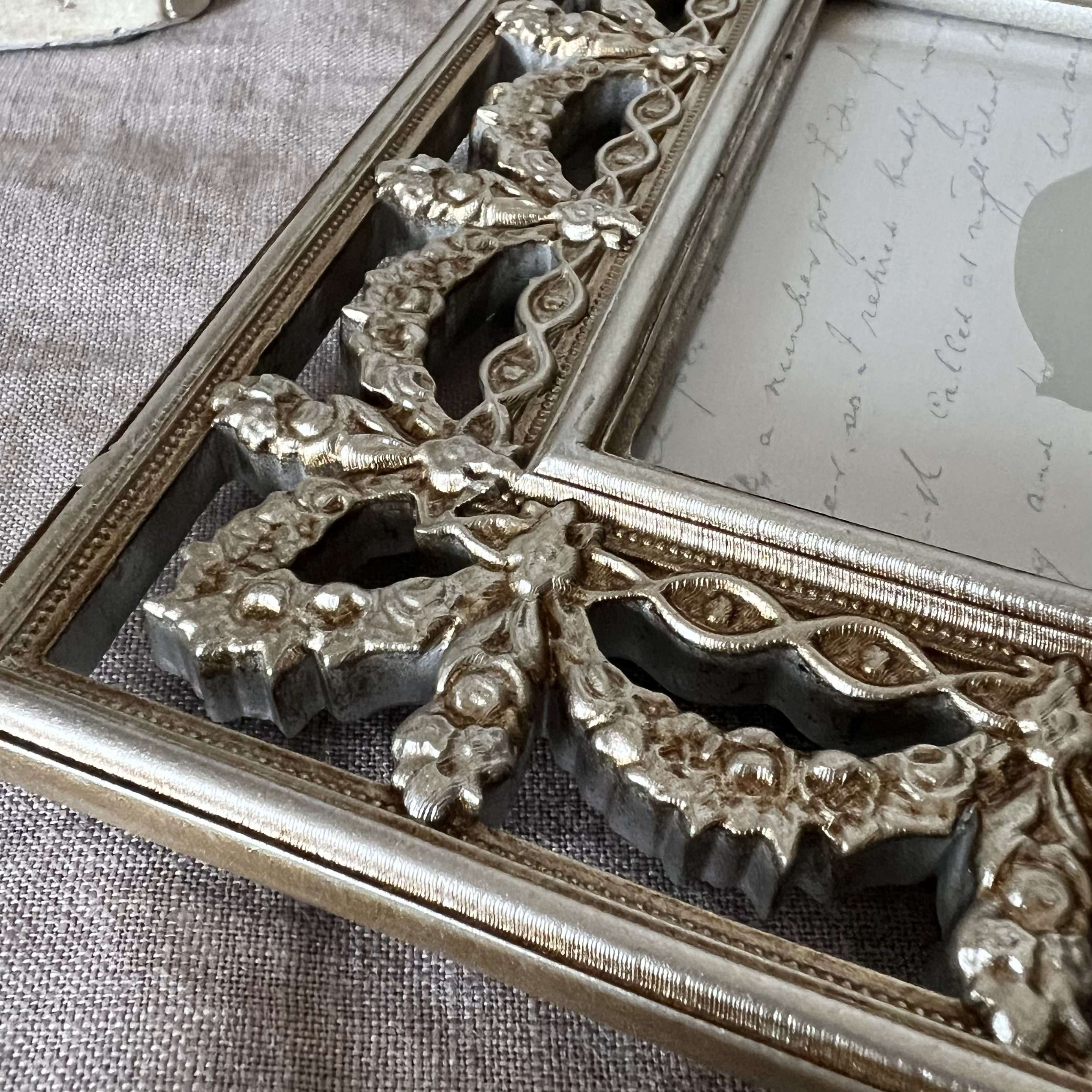 アンティークな雰囲気が漂う、装飾が美しいフォトフレーム。