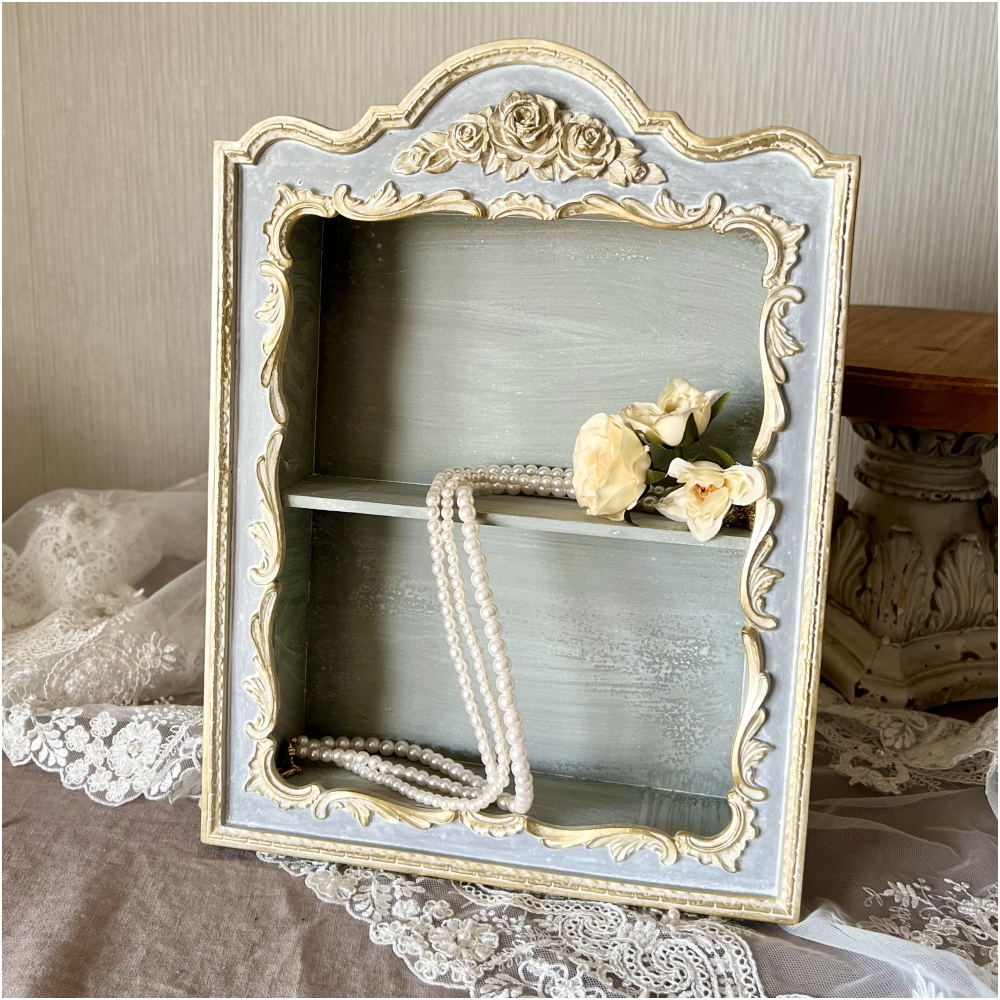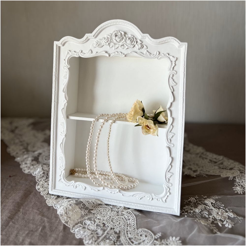 アクセサリーや小物を飾るのにピッタリな壁掛け式のシェルフです。