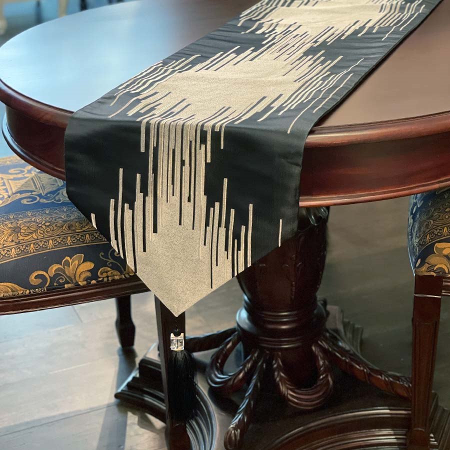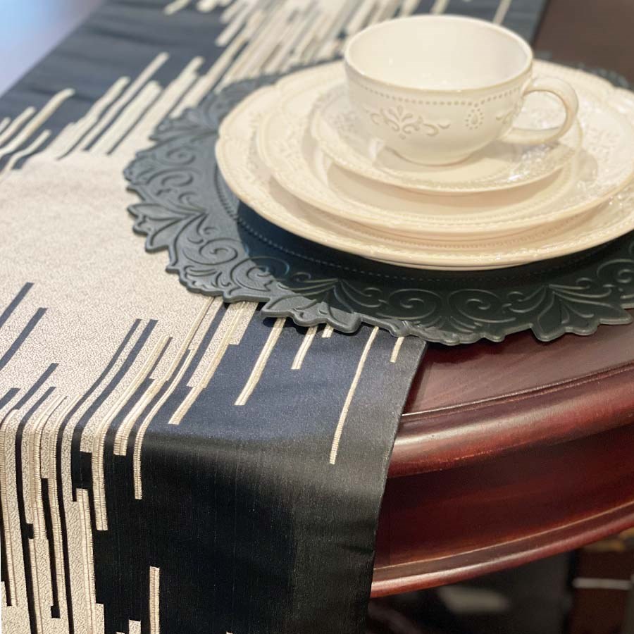 縦に流れるようなライン模様が印象的なテーブルランナー。