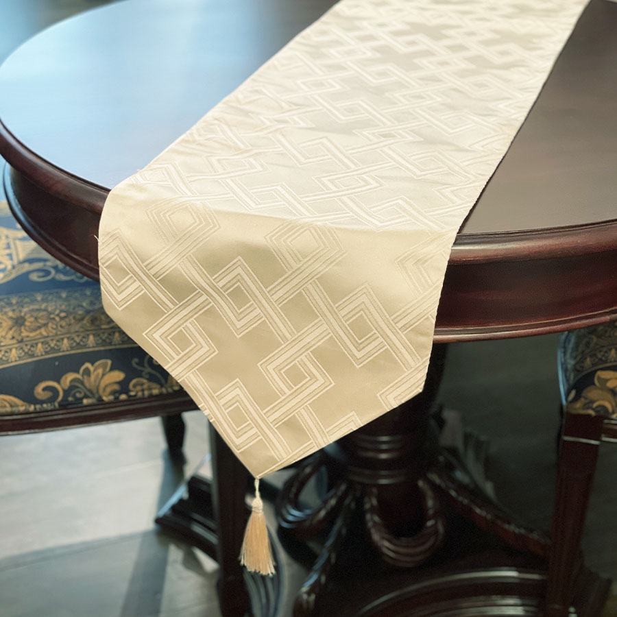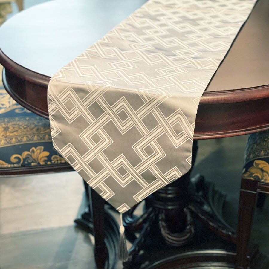 上品な幾何学模様を織り込んだテーブルランナーです。