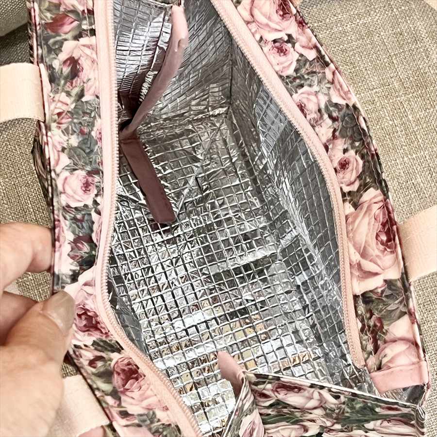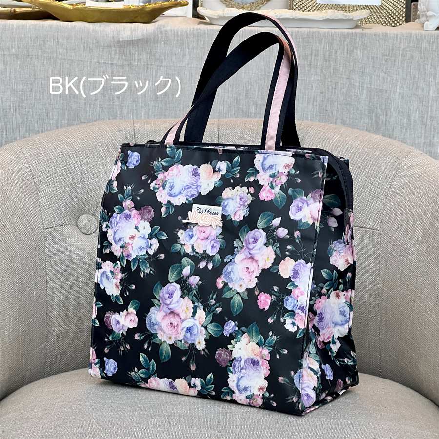 薔薇 ローズ 花柄 マチ付き ランチバッグ マイバッグ 大きめ レディース アルミ蒸着 クーラーバッグ エコバッグ 通勤 通学 お弁当