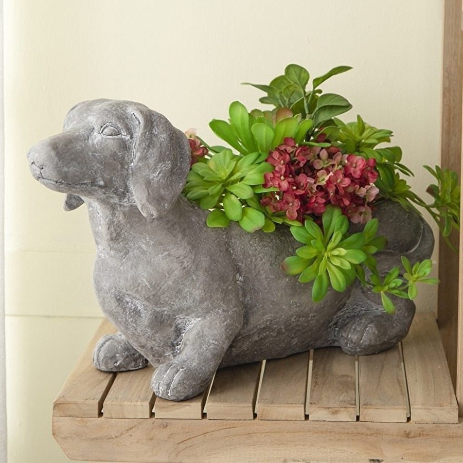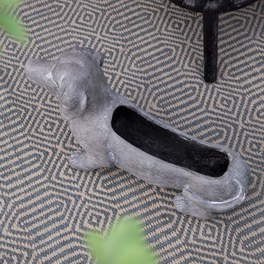 かわいらしいダックスフンドの姿をかたどったユニークなプランター。