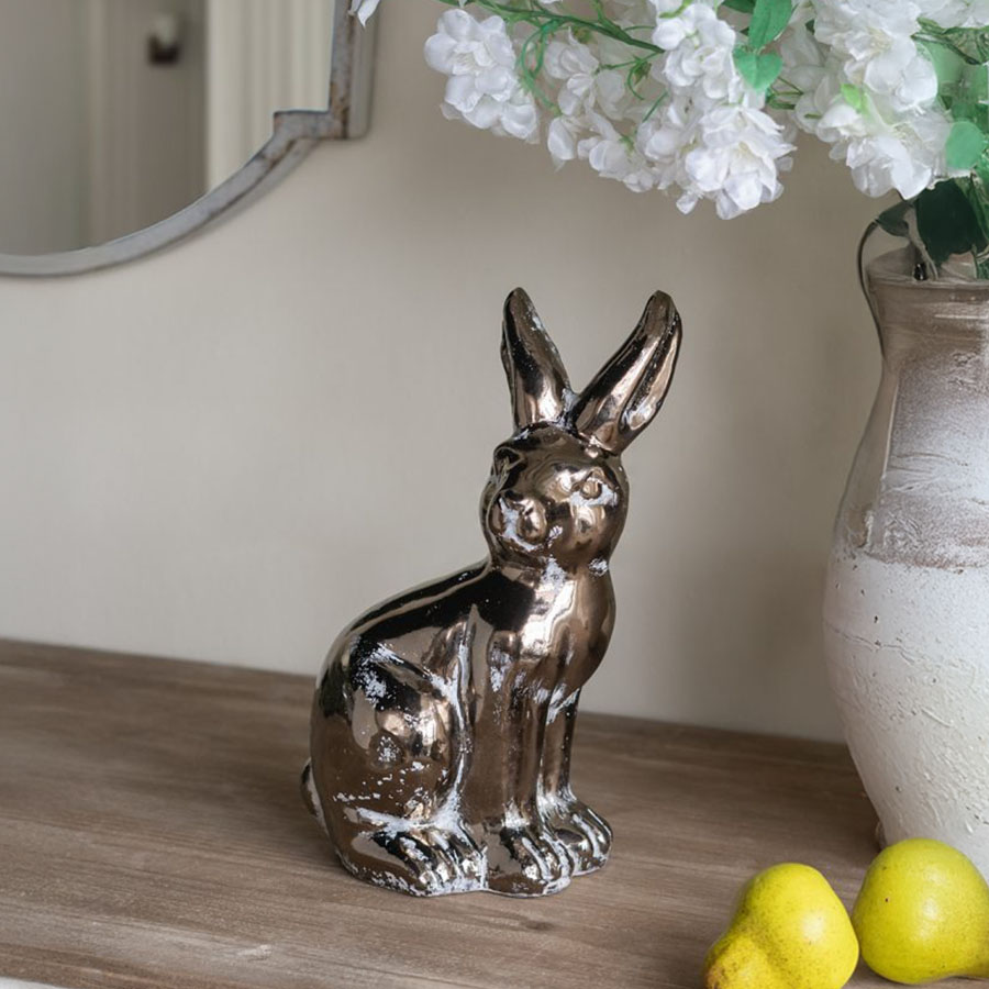 つぶらな瞳とピンと立った耳が印象的な、ウサギのオブジェです。