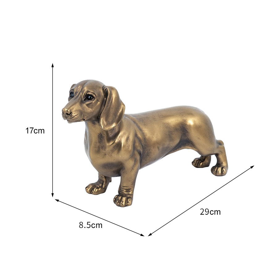 リアルな造形と、落ち着いたブロンズ調の仕上げが魅力のダックスフンド置物。
