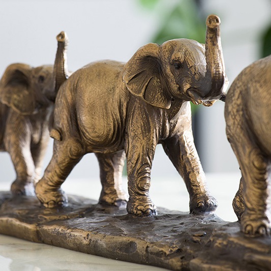 細部まで精密に表現されたエレファントファミリーのオブジェです。