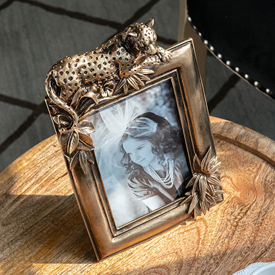 このハンサムでモダンなゴールド仕上げのレオパードフォトフレームで、お部屋に野生を取り入れてみませんか。