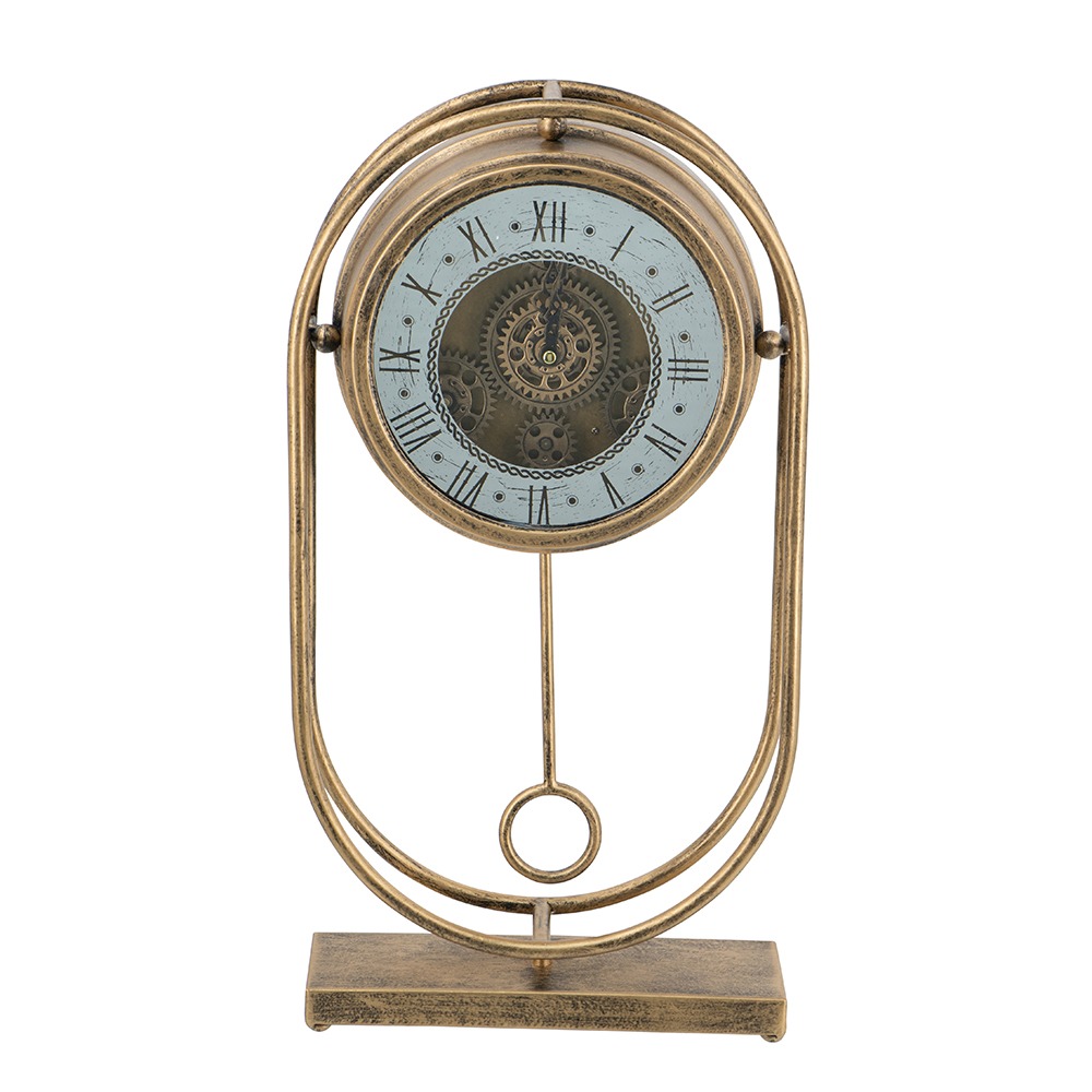 クラシカルなデザインとアンティークゴールドの質感が印象的な、インテリア置き時計です。