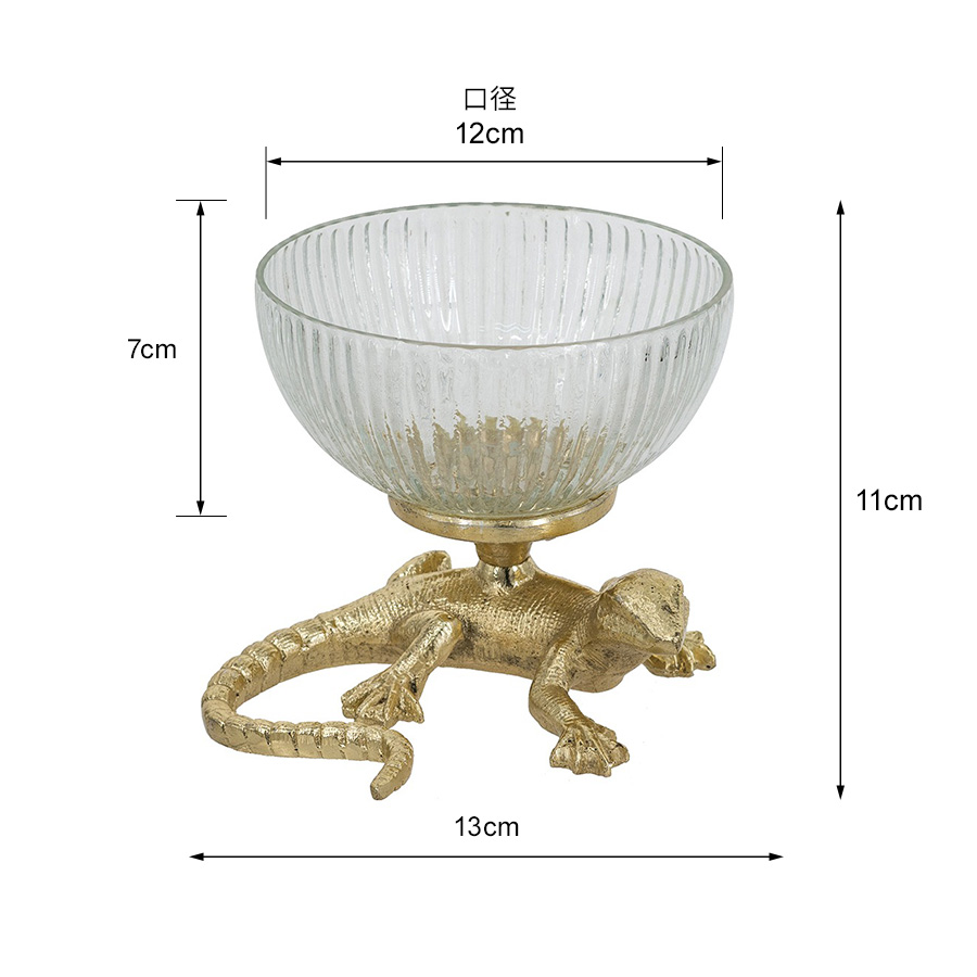 クラシカルなガラスボウルに、ゴールドのリザードモチーフを組み合わせた個性的なインテリアボウル。