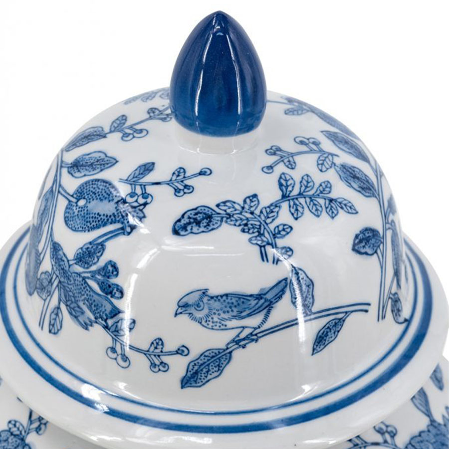 白磁に上品なブルーの花模様をあしらった、クラシカルなフタ付きジャー。