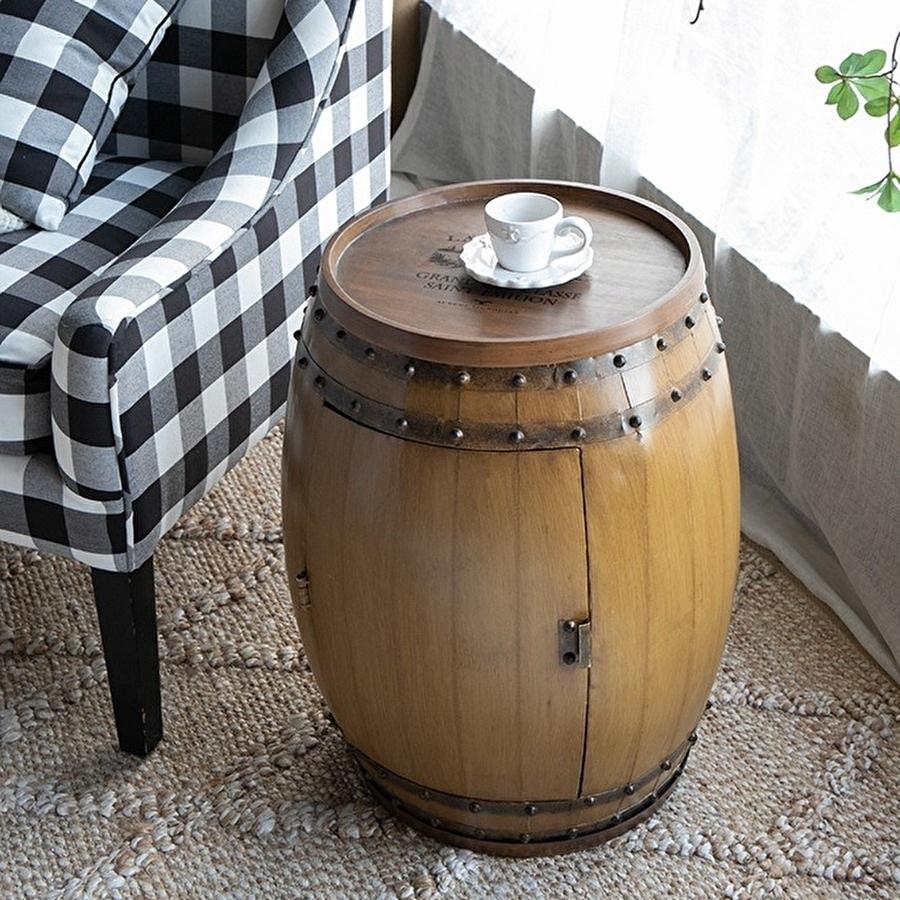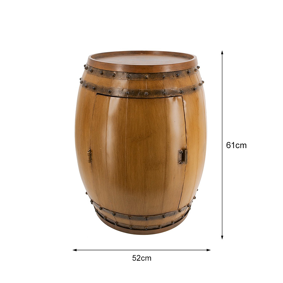 クラシックな樽(バレル)をモチーフにした、存在感抜群のワインラック付きサイドテーブルです。