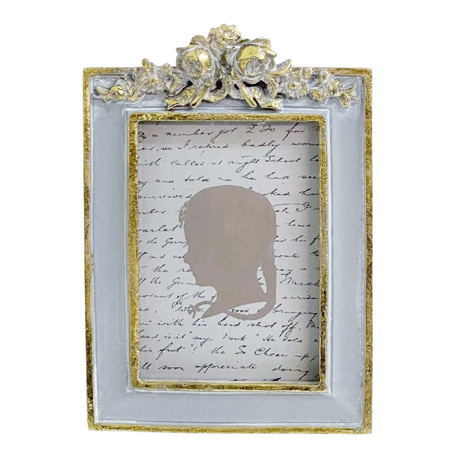 クラシックなローズ装飾が目を惹く、アンティーク調のフォトフレーム。