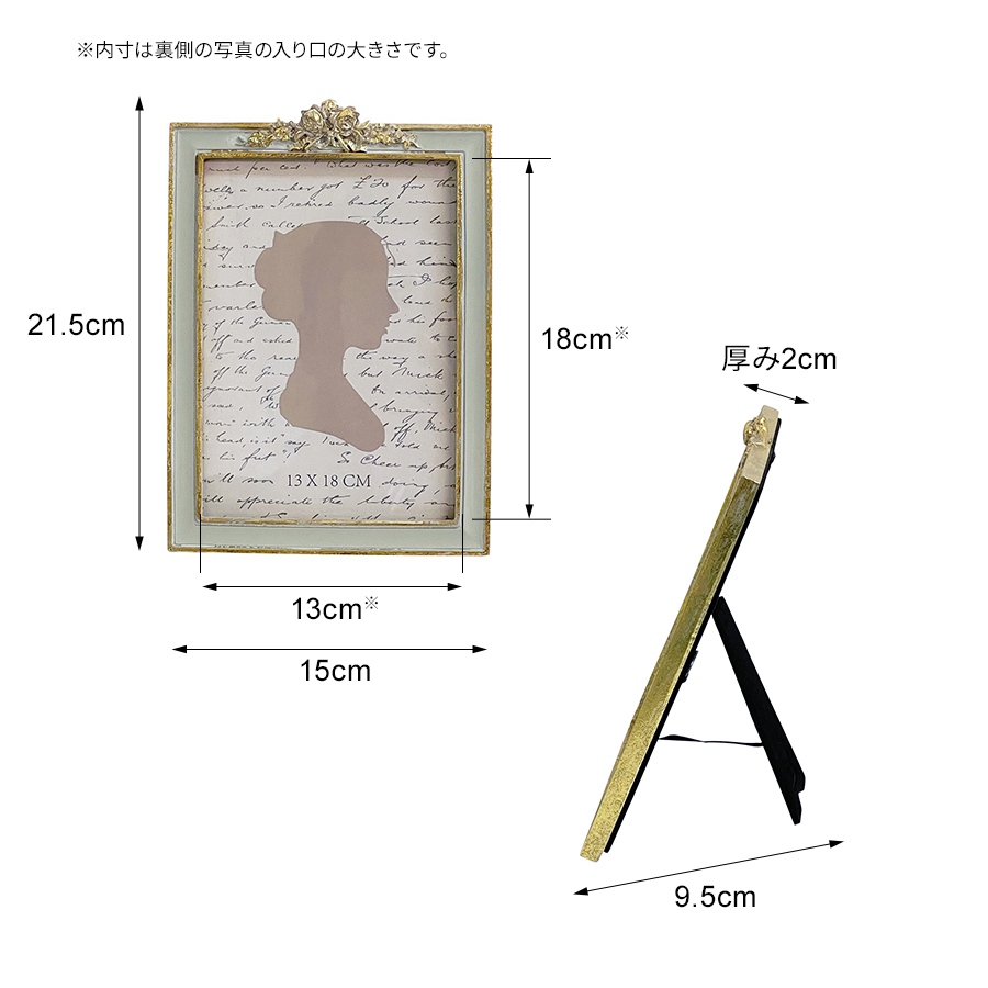 アンティークグレー 長角 フォトスタンド 英国 姫系 プリンセス 贈り物 お祝い ギフト 輸入雑貨 ブライダル ウェディング アンティーク 出産祝い 結婚祝い 家族写真 記念日 誕生日 プレゼント 飾り インテリア雑貨 ヨーロピアン シャビーシック