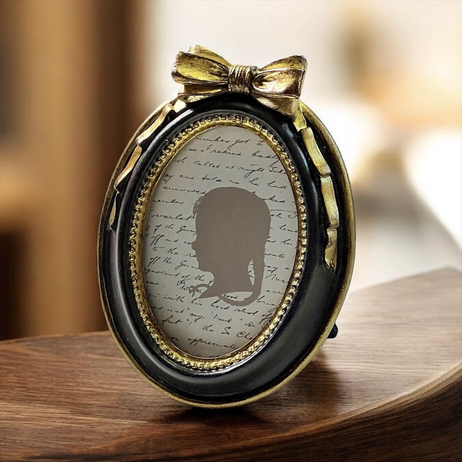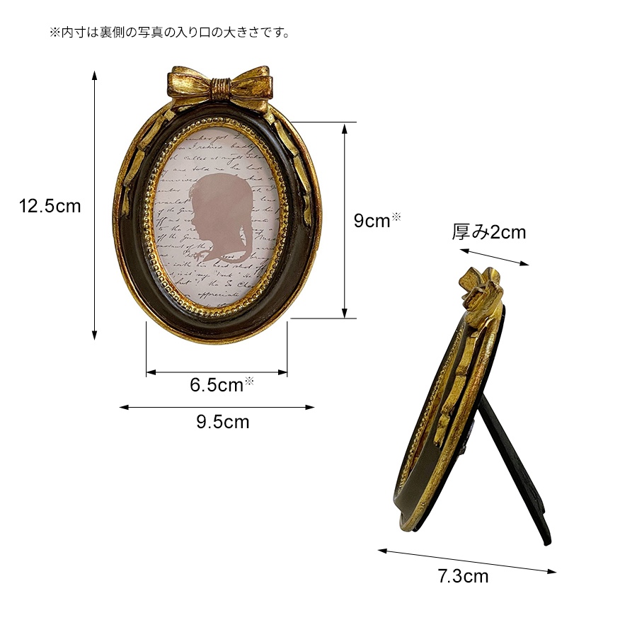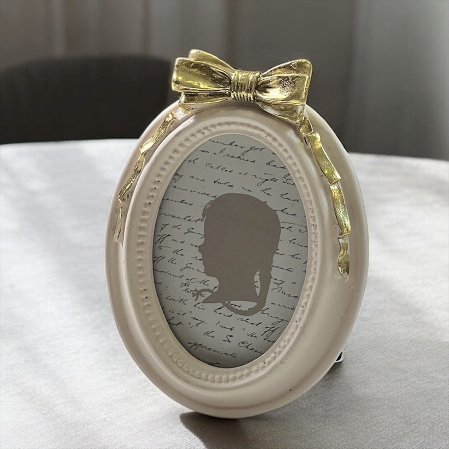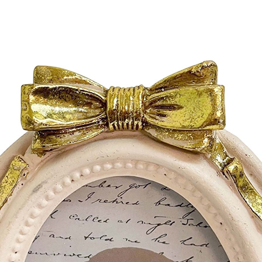 ゴールドのリボンモチーフが目を惹く、エレガントなミニフォトフレーム。