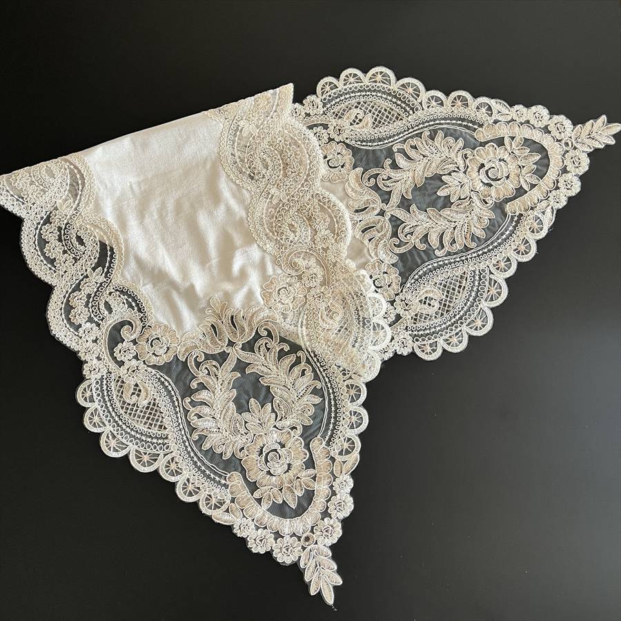ベロアならではの柔らかな質感と、透け感のあるレースのコントラストが美しく、置くだけでテーブルコーディネートの主役になる存在感。