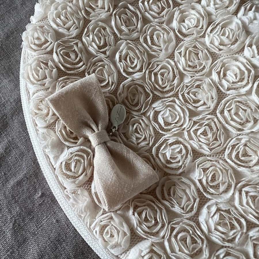 美しいバラの生地とリボンが特徴です。