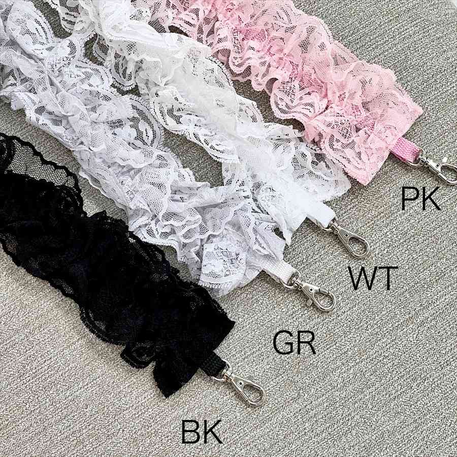 5色展開 ピンク ホワイト ブラック グレー フリル レースストラップ 肩掛け 斜め掛け 大人可愛い