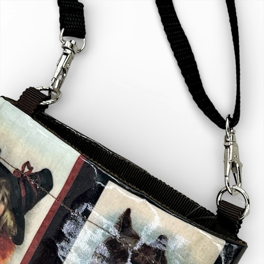 アンティークなポストカードに描かれた愛らしい猫をモチーフにした、ミニショルダーバッグ。