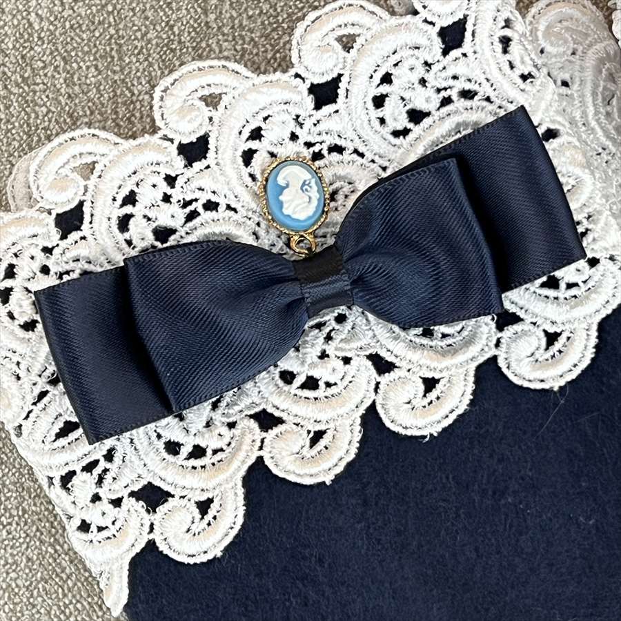 クラシカルなカメオチャームとリボン、繊細なレースをあしらった、上品で可憐な印象の手袋。