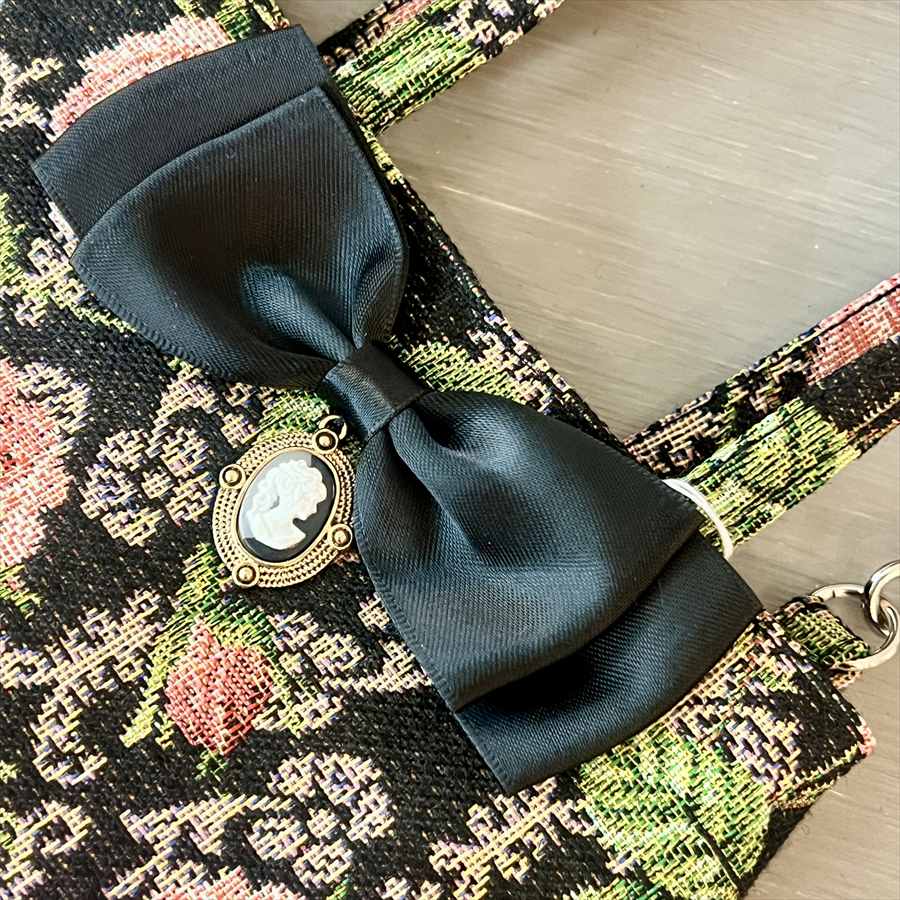 大きなリボンにカメオのモチーフが付いたクラシカルで可愛いデザインになっています。