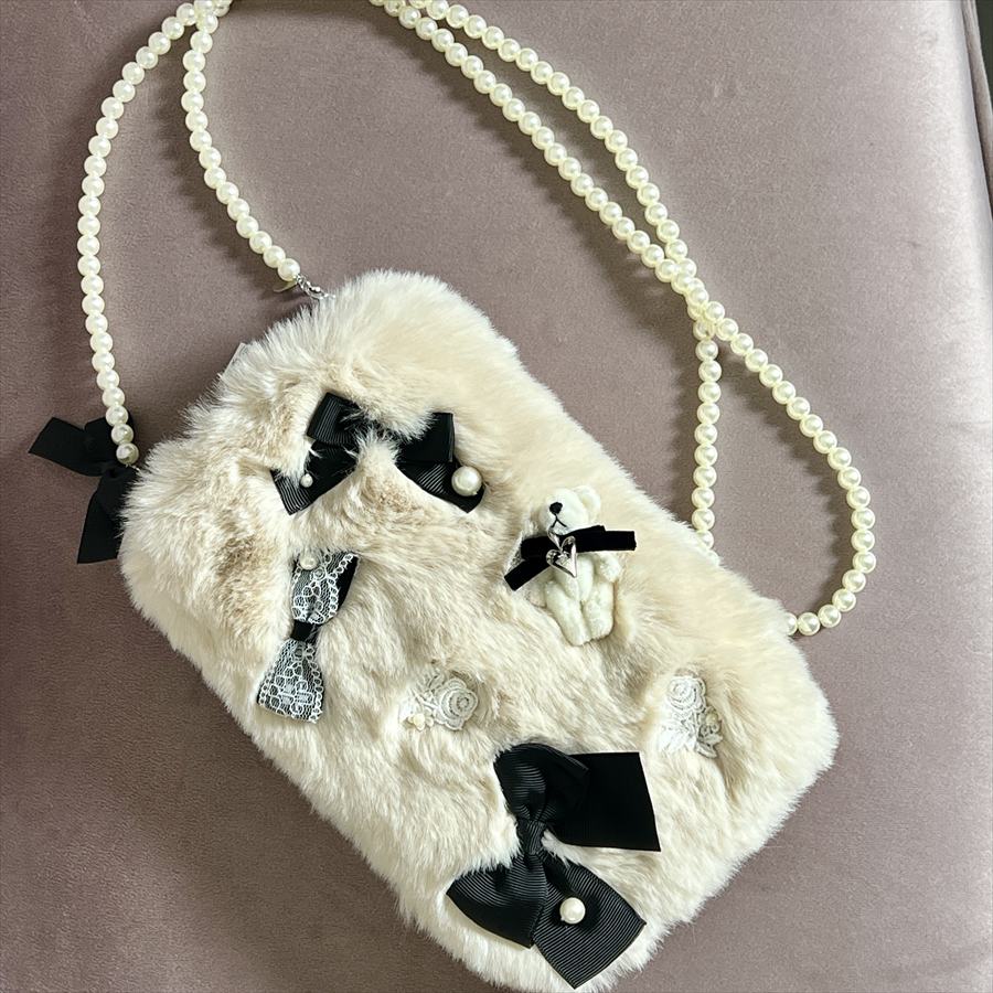 クマちゃんファーポシェット パールチェーン