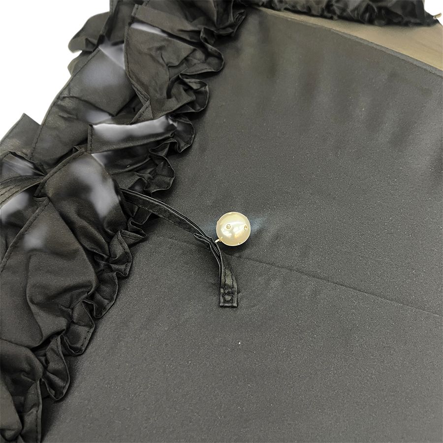 留め具にはパール付きボタンを採用し、細部までエレガントに仕上げました。ゴシックやクラシカルスタイルはもちろん、大人のコーディネートにも美しく映える一本です。