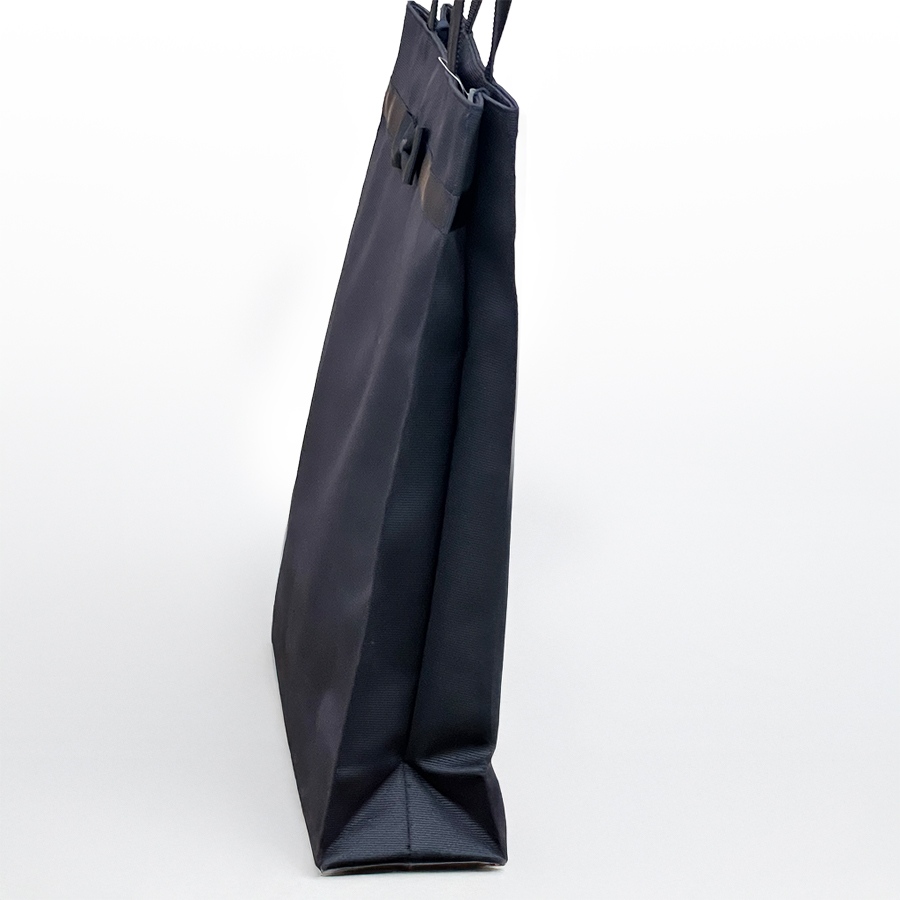 安心の日本製で、カラーは定番のブラックとネイビーの2色展開。きちんと感が求められるシーンに一つ持っておきたい、実用性と上品さを兼ね備えたトートバッグです。