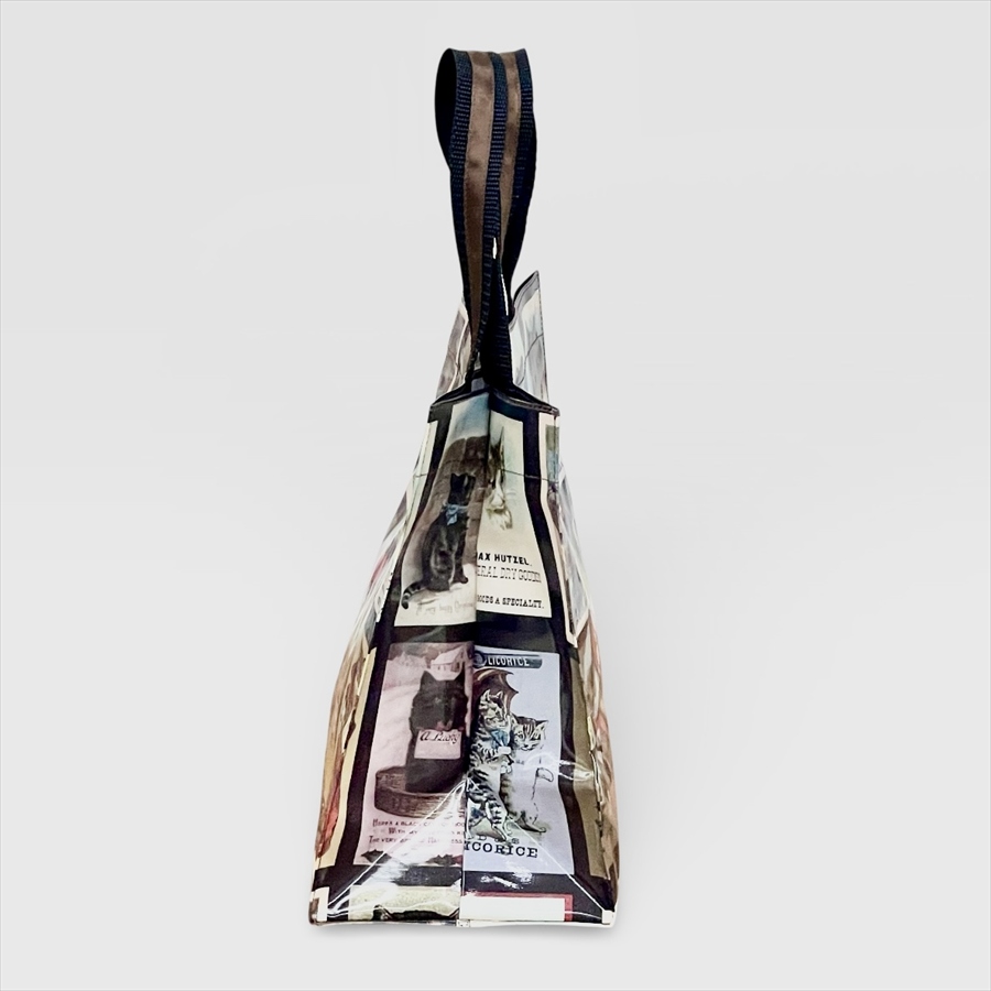 アンティークポストカード風の猫モチーフが目を引く、ミニサイズのトートバッグです。