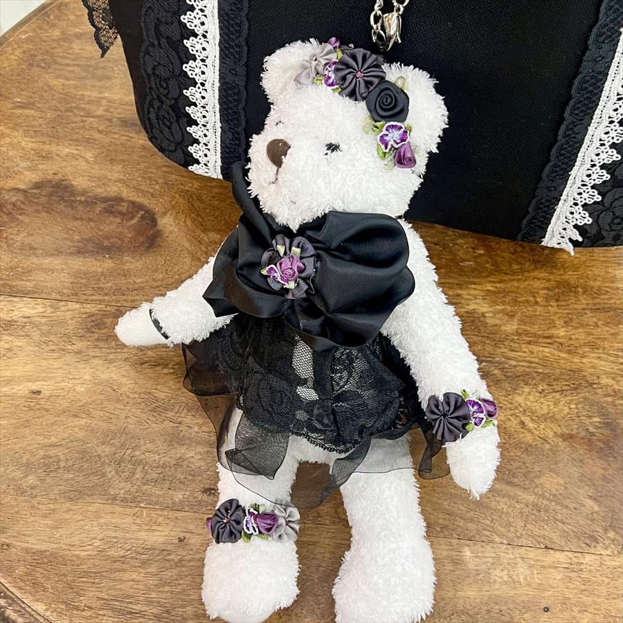 レースとリボンで華やかに仕上げた、フェアリーベア繰手トートバッグ。