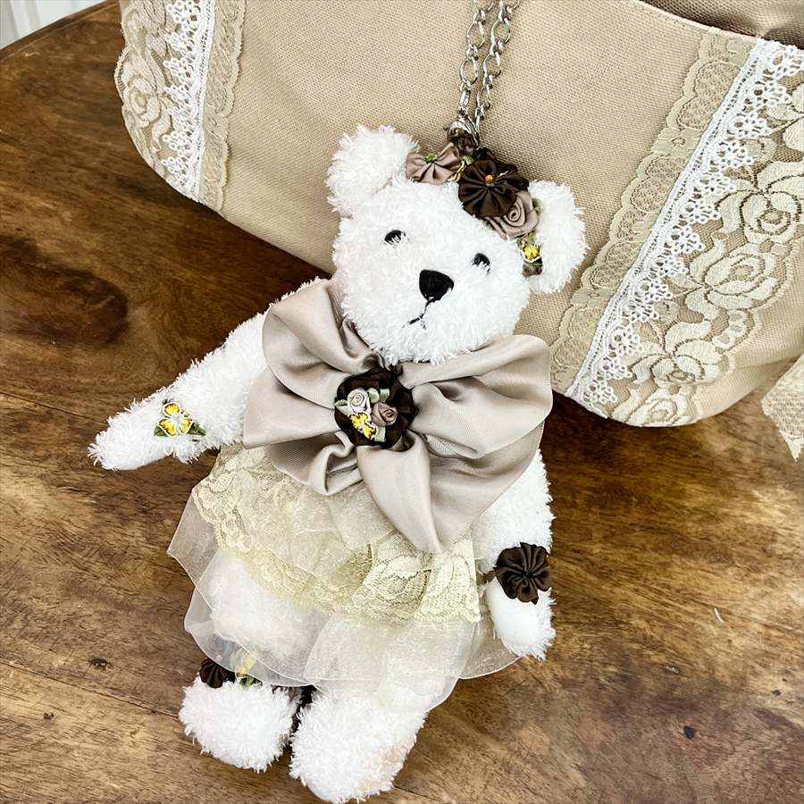 ベアチャーム付き マチ付き 内ポケットあり 肩掛け 肩かけ 2色展開 くま ベア 縫いぐるみ ぬいぐるみ サブバッグ 軽量
