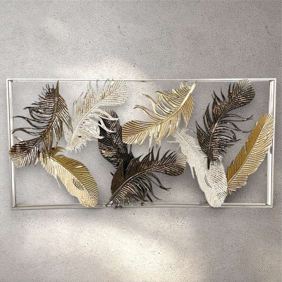 羽根(フェザー)モチーフを立体的にあしらった、アイアン製のウォールデコレーションです。