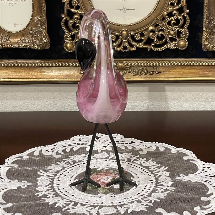 ガラス フラミンゴ オブジェ