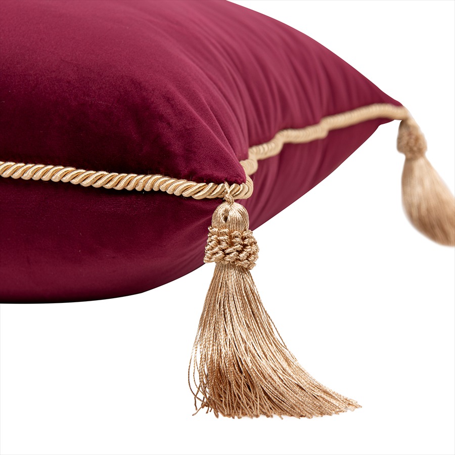 四隅にはエレガントなゴールド系タッセルをあしらい、ヨーロピアン・クラシックやホテルライクな雰囲気を演出。