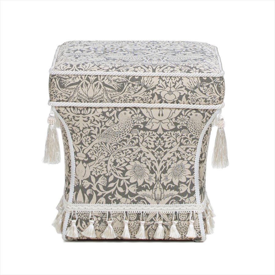英国デザインの名作ウィリアム・モリス「いちご泥棒(Strawberry Thief)」柄を、上質なジャガード織生地で仕立てたJennifer Taylor(ジェニファーテイラー)のクラシックスツール。
