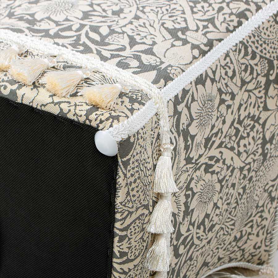 四隅のタッセルとブレード装飾が、アンティーク調の気品をプラス。