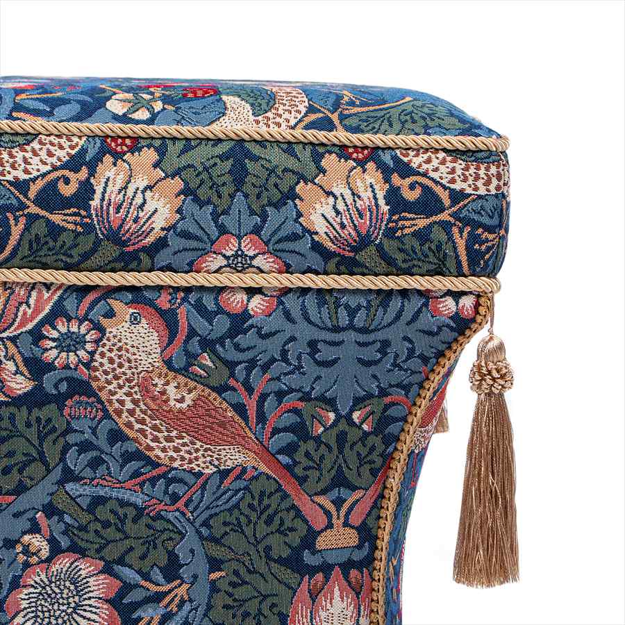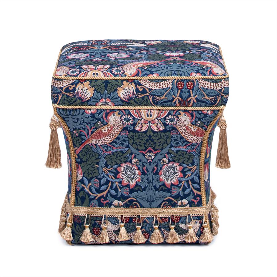 英国デザインの名作ウィリアム・モリスいちご泥棒(Strawberry Thief)柄を、高級感のあるジャガード織生地で仕立てたJennifer Taylor(ジェニファーテイラー)のクラシックスツール。