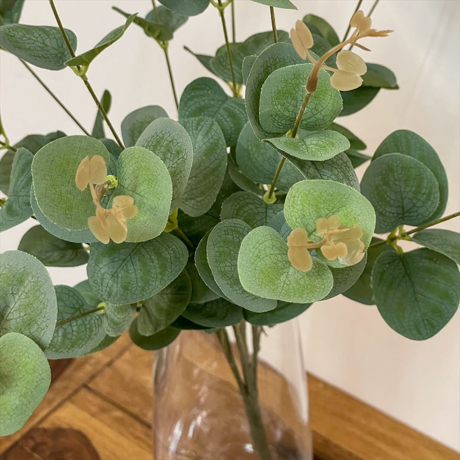 丸みのある葉とナチュラルな色合いが、本物のユーカリのようなやさしい雰囲気を演出します。