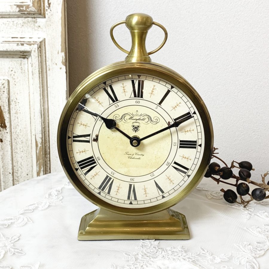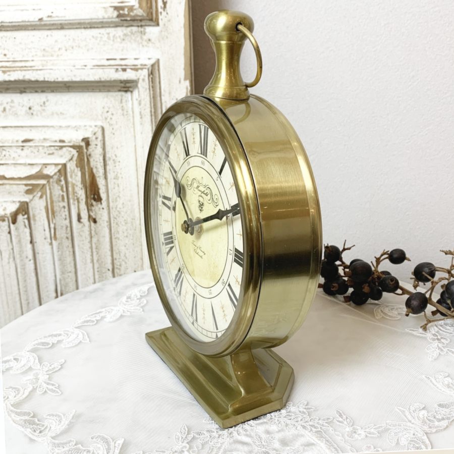 クラシックモダン 置時計 ラウンド アンティークブラス